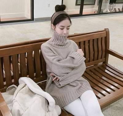 ナチュラルなシルエットアンバランス丈プルオーバーハイネック