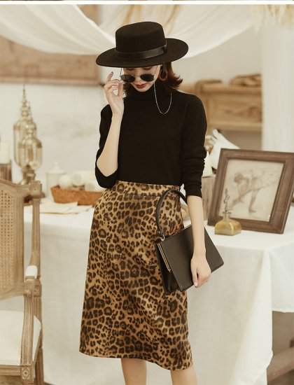 売れ筋 今季トレンドフェイクスエード ヒョウ柄 レオパード 総柄 トレンド ハイウエスト タイト ひざ丈 カジュアル
