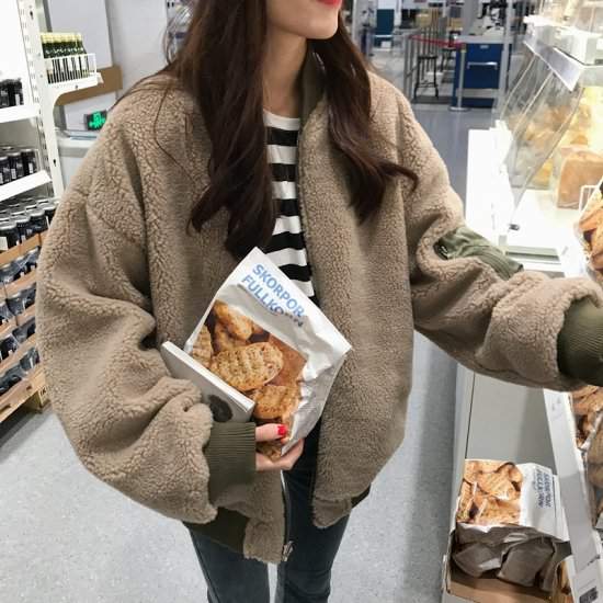 オルチャン韓国韓国 ジャケット もこもこ暖か♪ リバーシブル ボアブルゾン ボアミリタリー A- 女子会 デートに☆