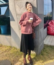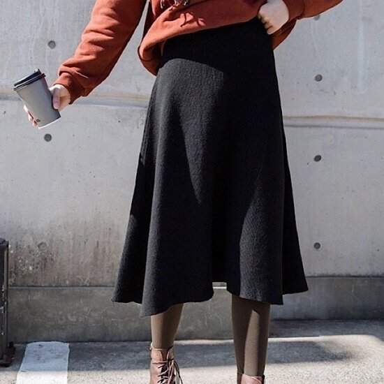 オルチャン韓国おすすめ 今季トレンド 膝下丈 ニットフレア キレイめ 通勤 シンプル フェミニン ミモレ丈