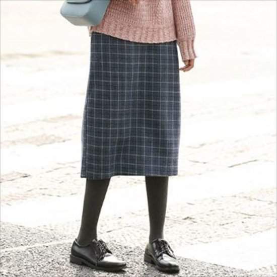 冬 新作 ウールスカート タイトスカート ミモレ丈 チェック柄 バックスリット きれいめ ct0614