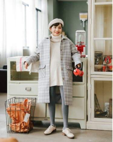 定番 人気 ウール ロング ステンカラー チェック柄 ゆったり フェミニン カジュアル 暖か