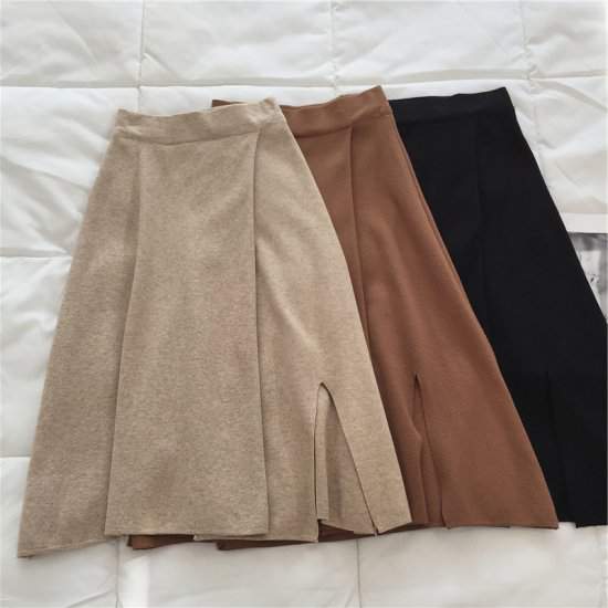 新作 おすすめ 冬物 ハイウエストAライン カジュアル フェミニン ガーリー シンプル アシメントリ? スリット
