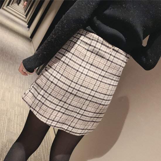ミニ丈 台形 トレンド チェック 可愛い フェミニン 脚長効果 美脚効果
