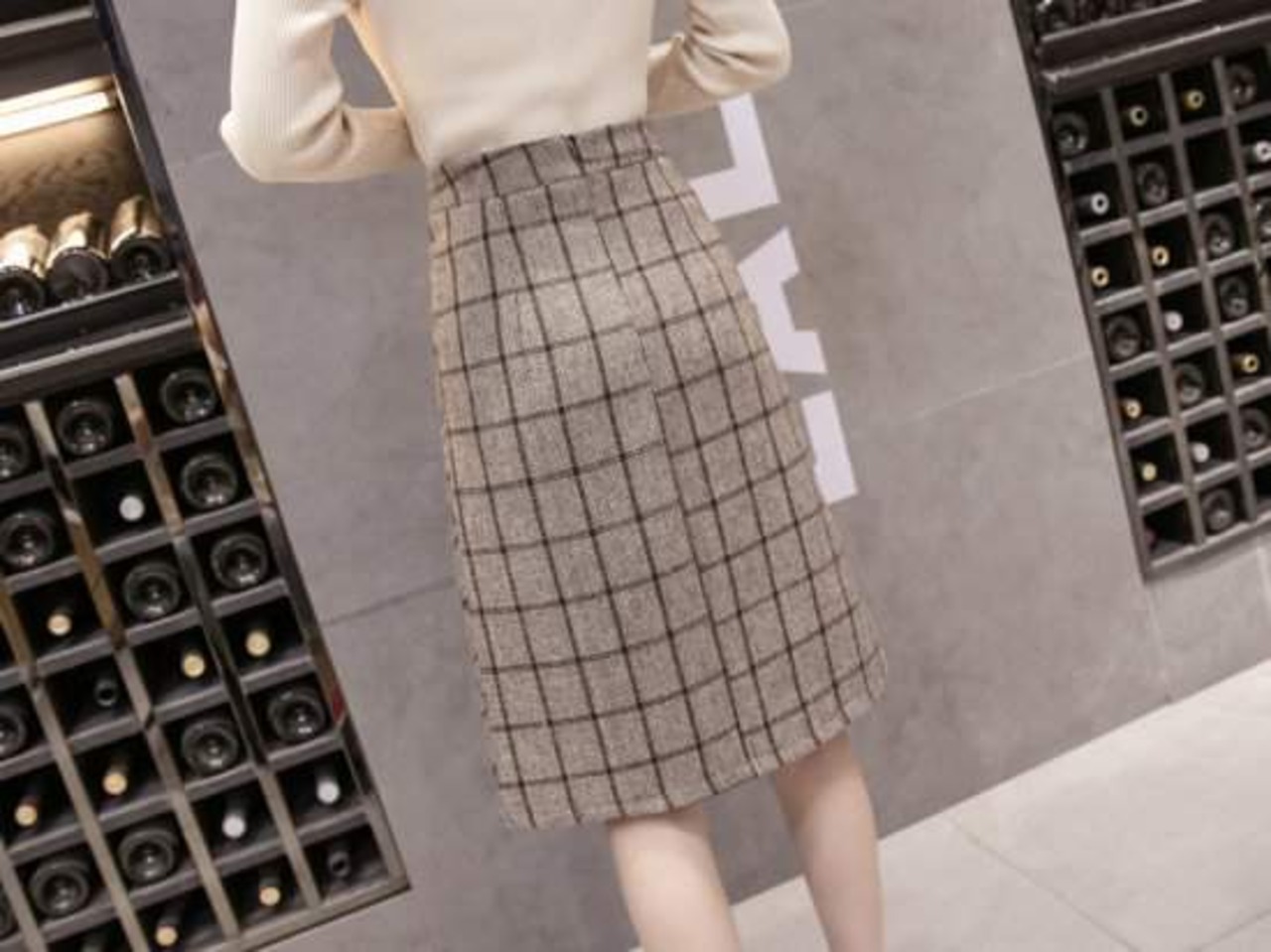 売れ筋 おすすめチェック柄 ラップ 巻き ハイウエスト Aライン ひざ丈