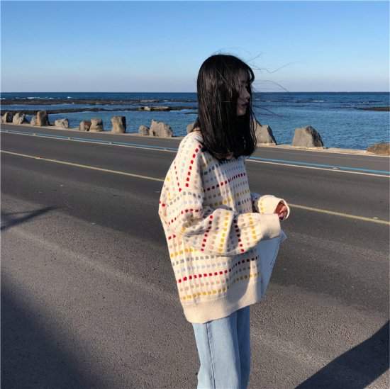 オルチャン韓国定番 人気ニットドット カジュアル カラフル キレイ 女子会 デート 通学