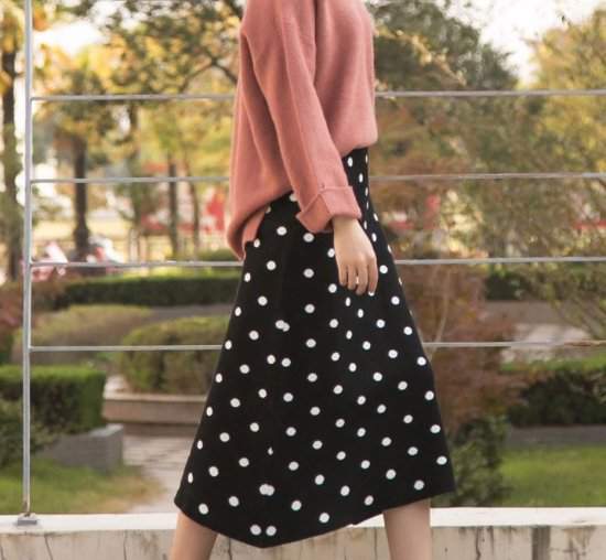 ロング丈 ドット柄 フェミニンふんわり ガーリー カジュアル