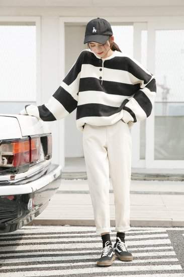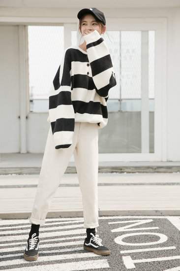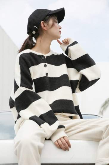 オルチャン韓国トレンド 冬 新作 ニットボーダー カジュアル オーバーサイズ リブニットお洒落 ガーリー