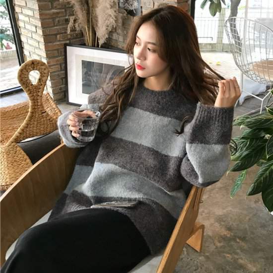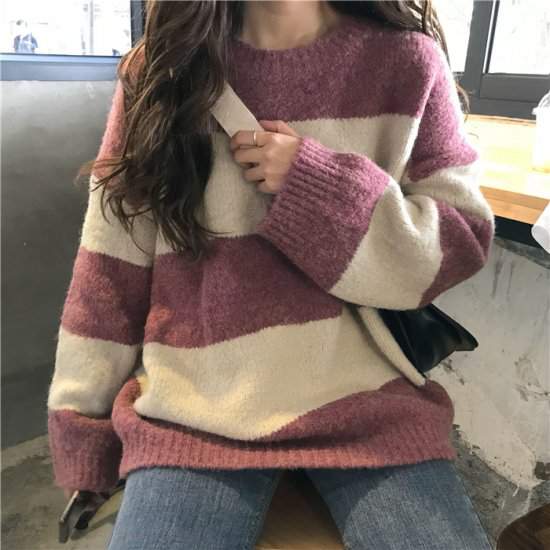 オルチャン韓国 NW ニットボーダー クルーネック ゆったり オーバーサイズ カジュアル トレンド