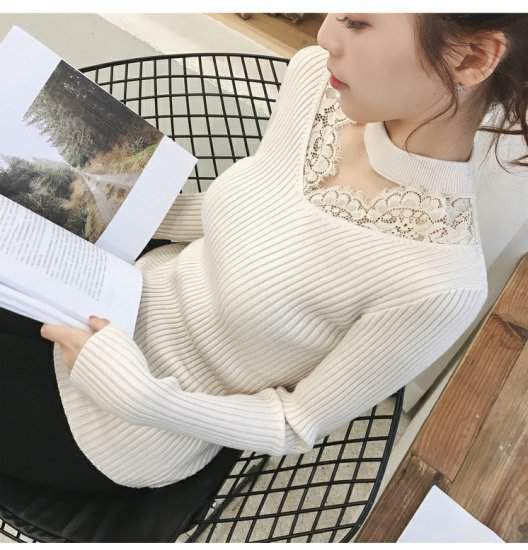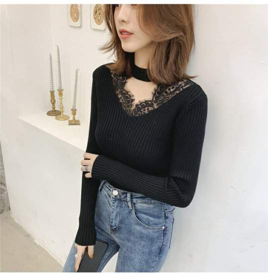 オルチャン韓国 ニット Vネック セクシー フェミニン 女子 可愛い レース ネックホルダー cd