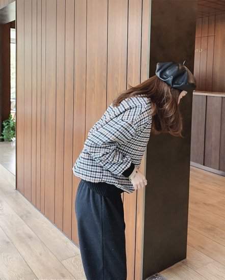 オルチャン韓国トレンド 売れ筋クルーネック ニットチェックカジュアル女子会デート 通学オフィス