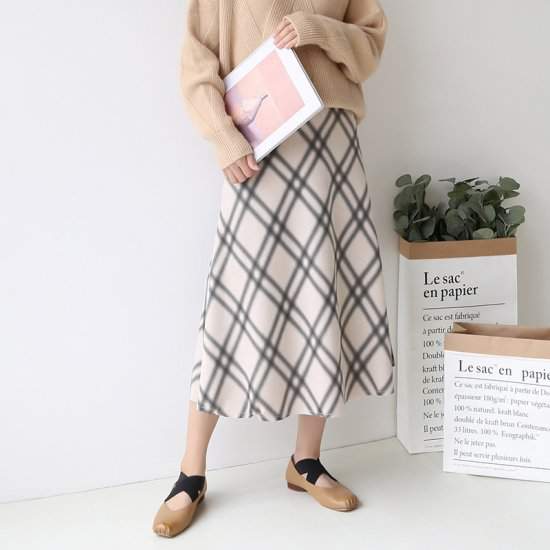 売れ筋 冬物フレア ハイウエスト ミモレ丈 チェック柄 Aライン カジュアル 可愛い 秋冬 ボトム