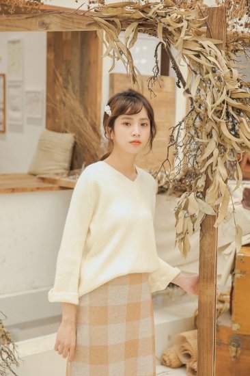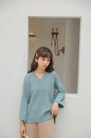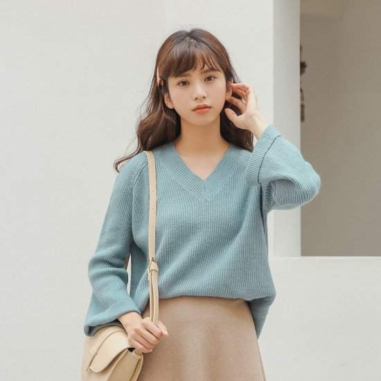 オルチャン韓国冬 トレンド ニットVネックリブ フレアスリーブシンプル