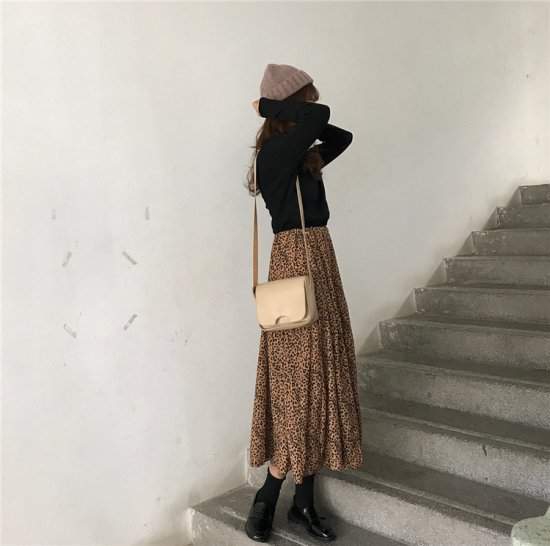 秋冬 NW 人気 ロング丈 フレアヒョウ柄 ハイウエスト ゆったり カジュアル デート