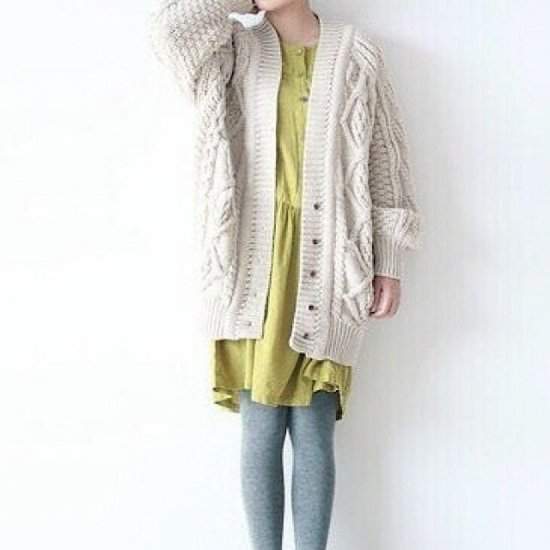 オルチャン韓国 Vネック ケーブル ニット カーディガン ローゲージ カジュアル ゆったり シンプル