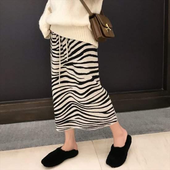 オルチャン韓国レデイース 新作 ニットゼブラ アニマル柄 ミモレ丈 カジュアル デート 女子会 ゆったり きれいめ