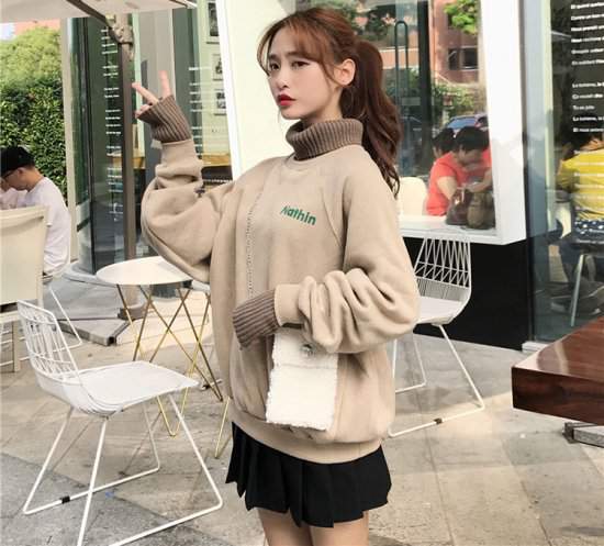 冬 トレンド スウェット トレーナーカジュアル ガーリー ハイネック お洒落 ロゴ