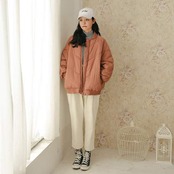 おすすめ 冬物 ダウンジャケット 中綿 ダウン キルティング ブルゾン ノーカラー ゆったり オーバーサイズ カジュアル