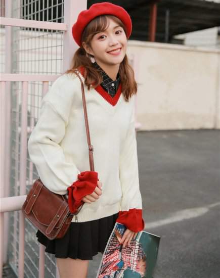 オルチャン韓国冬 新作 ニット Vネックフレアスリーブ 制服風 ゆったりめ