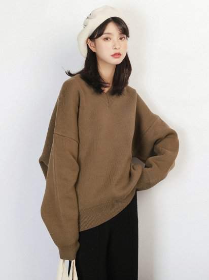 オルチャン韓国売れ筋 今季トレンド Vネック ニットプルオーバー オーバーサイズ ゆったり くすみ色 カジュアル シンプル