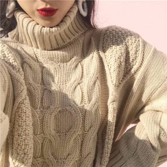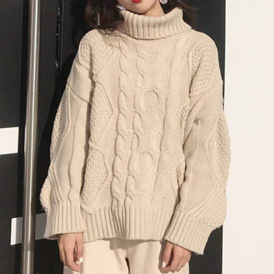 オルチャン韓国新作 売れ筋 冬 ニット タートルネック ケーブル編み ゆったり ガーリー カジュアル