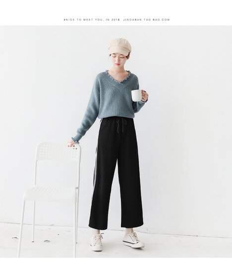 オルチャン韓国人気秋冬 ニットVネック シンプル きれいめ フリル 細リブワンサイズ
