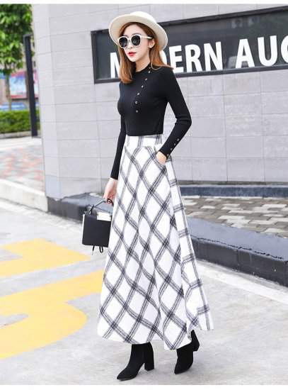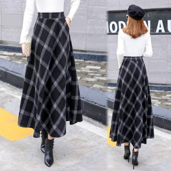 冬物 人気ハイウエスト フレア ロング キレイ チェック 女子会 デート 通学 カジュアル