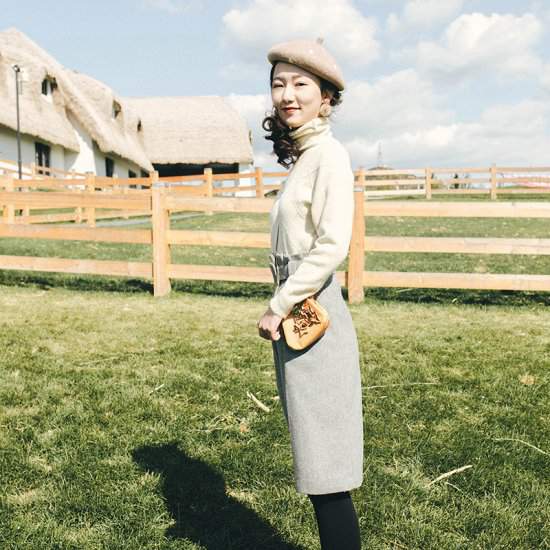 トレンド 売れ筋 冬物ウール キレイ シンプル くすみ色 ハイウエスト女子会デート 通学 カジュアル オフィス
