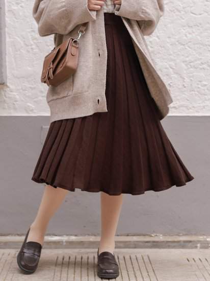 オルチャン韓国トレンド売れ筋 おすすめニット キレイめ シンプルベイクドカラー プリーツ ハイウエスト