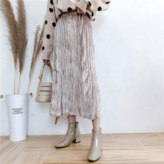 冬 新作 プリーツベルベット ロング丈 女子会 デイリー ハイウェスト ガーリー サテン