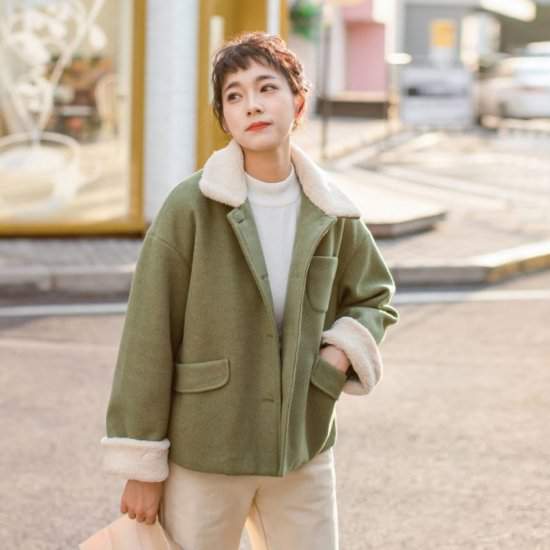 NWアウター ショート ブルゾン ボア カジュアル くすみ色ガーリー お洒落