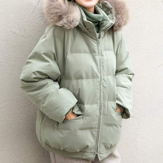 今季トレンド 冬 ショート丈 ダウン フード ファー ジッパー カジュアル