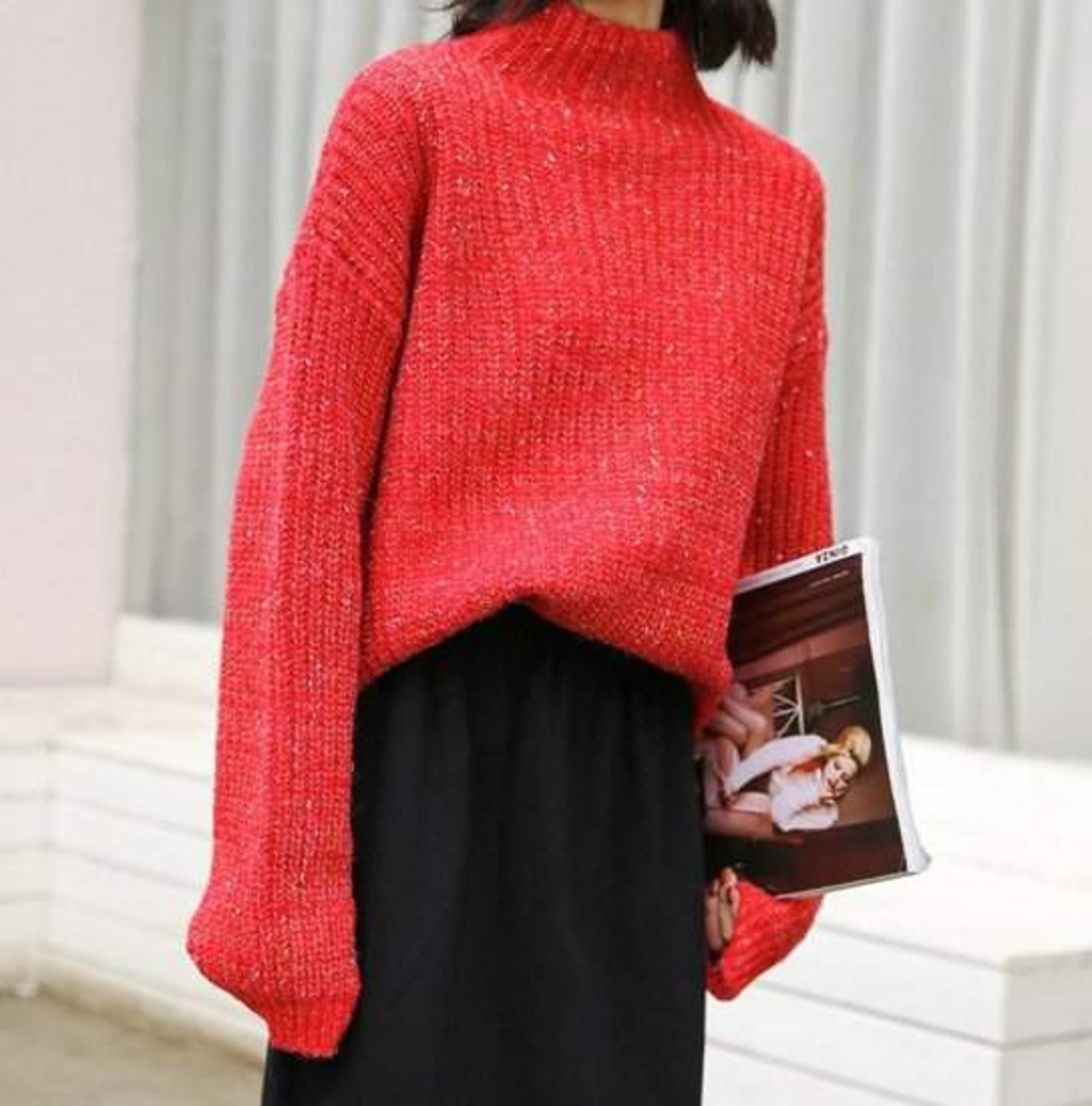 オルチャン韓国売れ筋 トレンド ニットハイネック こなれ感 女子会デート 通学 シンプル 上品 ルーズ 普段着