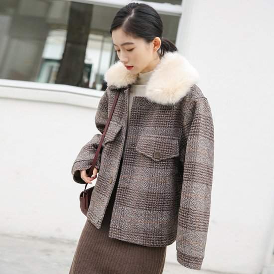 冬物 ジャケット ショート丈 チェック ファー キレイめ 上品 オフィス 通勤 女子会 可愛い デート