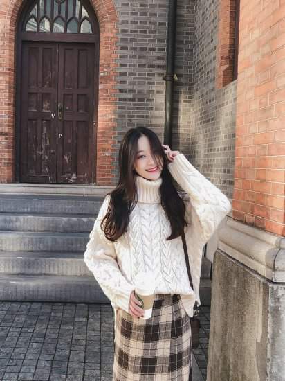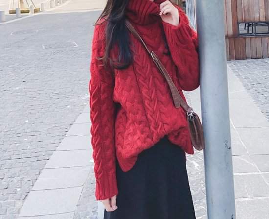 オルチャン韓国 ニット タートルネックワンサイズ ケーブル編み カジュアル