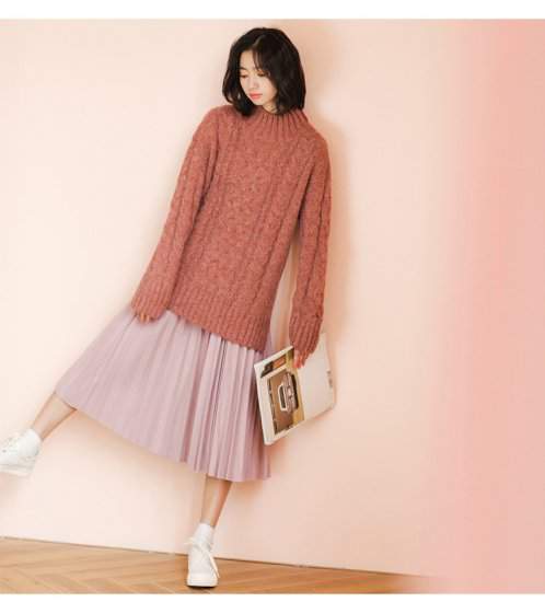 オルチャン韓国おすすめ 今季トレンド ニットボトルネック ケーブル編み ゆったりトレンド ガーリー ベーシック