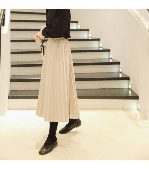 冬 オススメ シフォン プリーツ ミモレ丈 ハイウエスト ワンサイズ