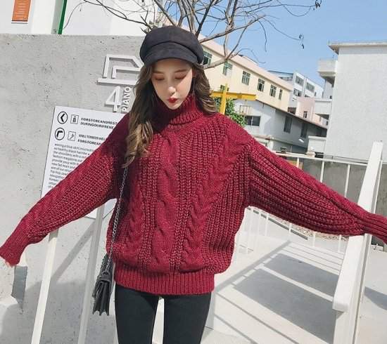 オルチャン韓国冬物 レデイース タートルネック ケーブル ニットカジュアル ゆったり キレイめ デート
