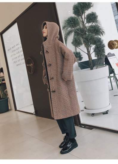 冬 トレンド ウール ロング丈 フード付き ダッフル チェック柄ヴィンテージ