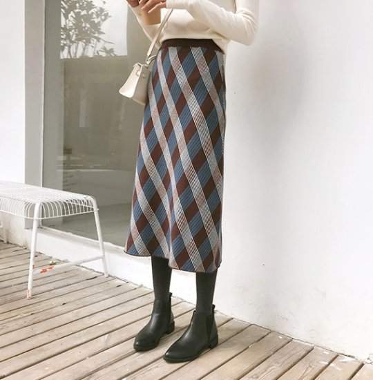 トレンド 冬物 売れ筋 ペンシル チェック柄 総柄ひざ下丈 Aラインカジュアル 可愛い