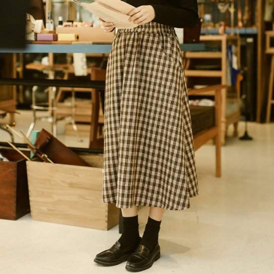 冬物 レデイースミモレ丈 フレア Aラインチェック柄 ギンガムチェック ガーリー カジュアル