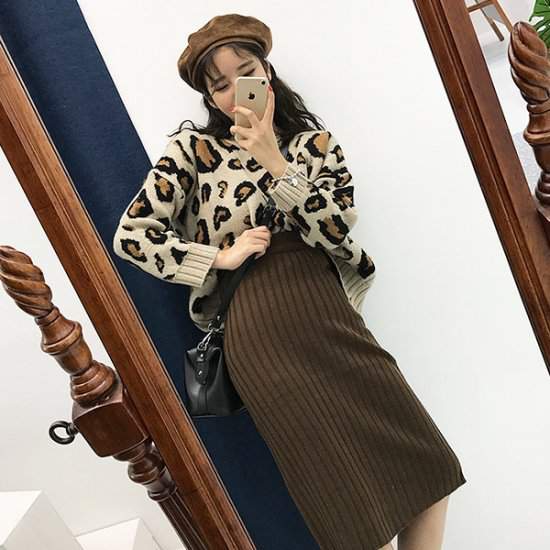 オルチャン韓国人気 売れ筋ニットタイトリブニット スリット ミディ丈シンプル トレンド 着まわし