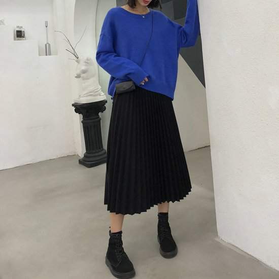 レデイース 新作 プリーツエレガント ミモレ丈 オフィスシンプル Aライン フレア