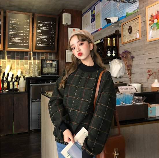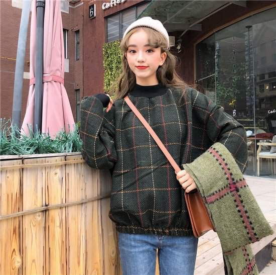 冬物プルオーバーチェック柄ゆったり カジュアル ガーリー