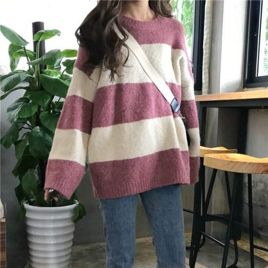 オルチャン韓国 NW ニットボーダー クルーネック ゆったり オーバーサイズ カジュアル トレンド