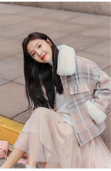 おすすめ 冬物 ショート丈 ウールチェック ボア ジッパー ふわふわ カジュアル デート 女子会