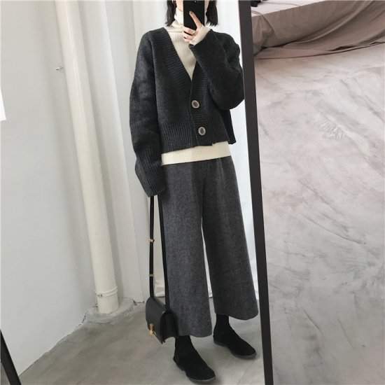 オルチャン韓国売れ筋 冬物 カーディガンニット シンプル Vネック ショート丈 カジュアル キャンパス