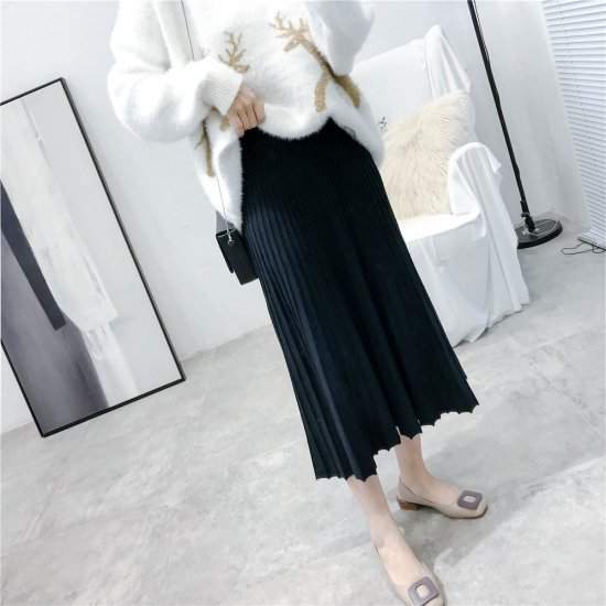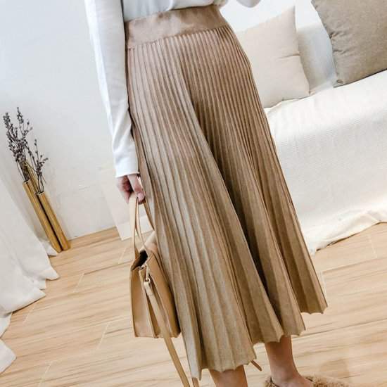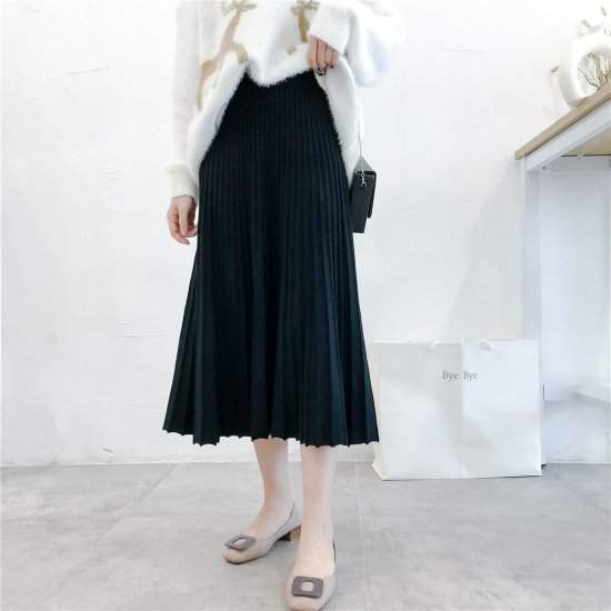 オルチャン韓国 ロング丈 ニットプリーツハイウエスト ゴム キレイめ