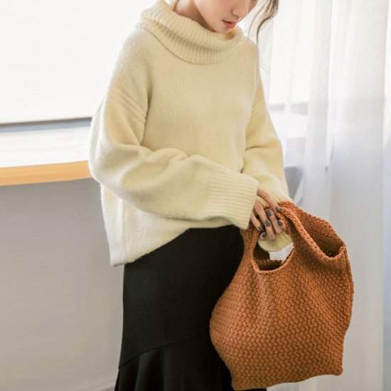 オルチャン韓国冬物ニットタートルネック ドロップショルダー ゆったりシンプル ベーシック 秋冬