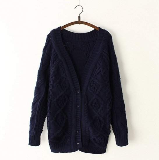 オルチャン韓国 Vネック ケーブル ニット カーディガン ローゲージ カジュアル ゆったり シンプル